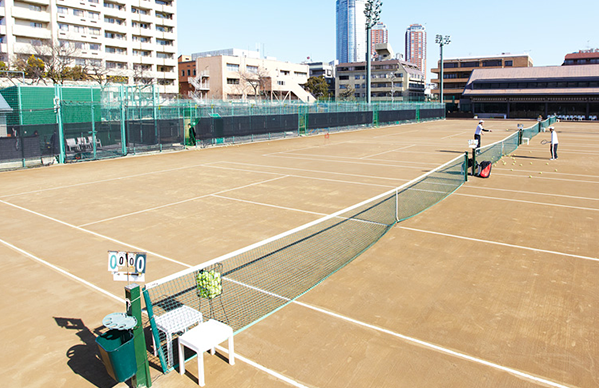 東京ローンテニスクラブでは、大相撲の土俵でも使用されている荒木田土(あらきだつち)を使用したクレーコートを採用しています。荒木田土は自然材料なので足腰への負担が少なく、適度なスピンがかかる一方で、球足は遅めなのでラリーを続けやすい、といった特徴があります。しかし、天候に左右されやすく、特に降雨後地面が乾くのに時間が掛かってしまうといった短所があります。当クラブでは荒木田土のクレーコートの性質を熟知したメンテナンスチームが降雨後の整備をしっかり行うことで、平らで崩れにくく、なおかつ粘りと弾力のあるコートを維持し、会員の皆様に常に最良のコンディションでプレーして頂けることを目標としています。